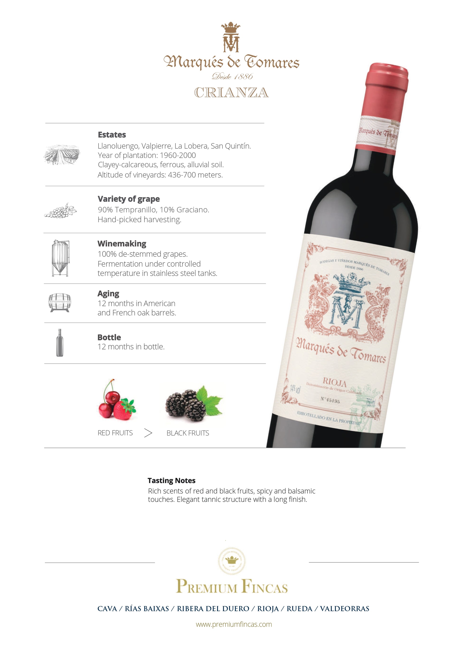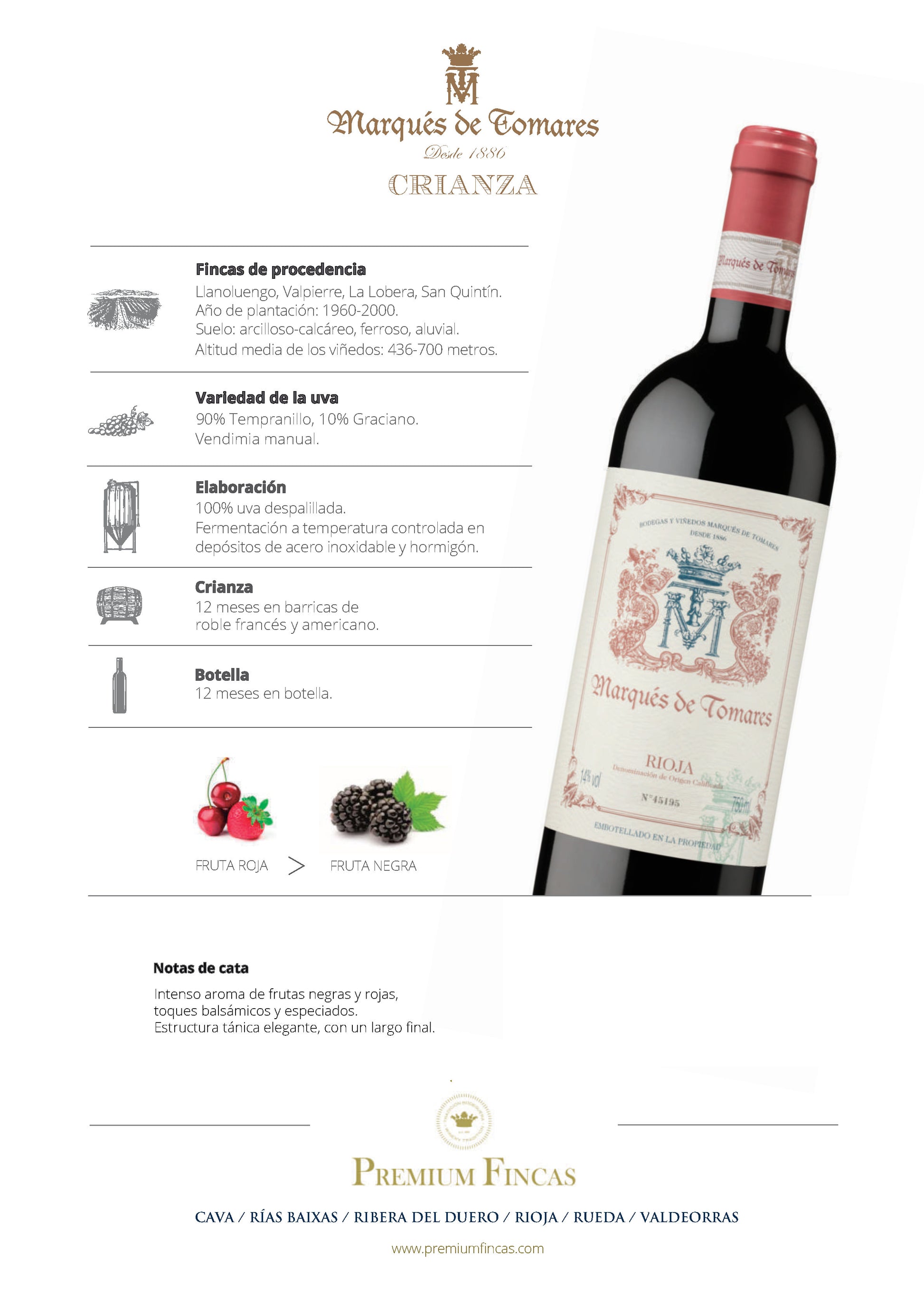 Crianza 12 meses en barricas de Roble Francés y Roble Americano